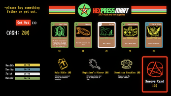 Demon Dash is a roguelike card battler with a Wordlelike stapled onto it for some reason. Build your deck, have random encounters, learn the names of demons, use that to deal bonus damage in exciting battles that probably are not balanced in any way, shape, or form! Running low on items? Stop by Hexspress Mart to buy rare artifacts and become the most powerful minimum wage priest the greater Massachusetts area has ever seen! But be quick, because if you don't expel that demon fast enough, you're walking home broke...